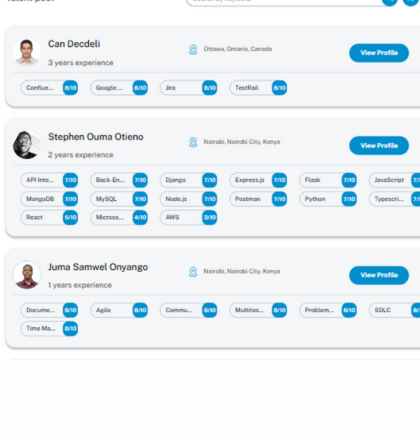 The platform includes an internal talent pool where organizations can retain candidate profiles for future roles. Recruiters can filter candidates by skills, experience, and location, reducing time-to-hire for upcoming needs.